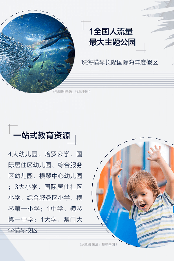 學校: 橫琴中心幼稚園 、橫琴新區第一小學 、珠海市橫琴第一中學 、澳門大學橫琴校區
