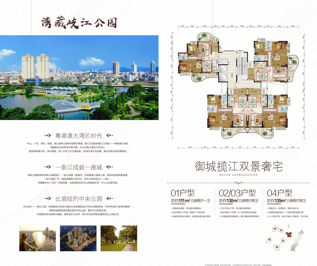 專案坐攬最美的一段岐江景,絕版一線南向望江豪宅,坐擁一江三景,一是南望一線江景,二是遠眺五桂山山巒景觀,三是隔江俯瞰整個城市景觀。岐江景對於中山來說,就好比香港的維港夜景、 上海的外灘一樣重要。江景樓盤賣一套少一套,房價必然越走越高。