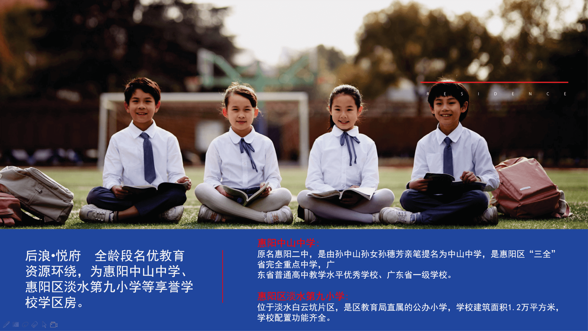 惠陽區——淡水第九小學(惠陽區公立小學 新校舍,新師資,項目學區學校)、北師大卓越實驗學校、西區第一、二小學、廣外附設大亞灣外國語學校、惠陽中山中學(廣東省一級學校,項目學區學校)