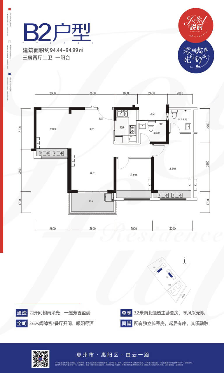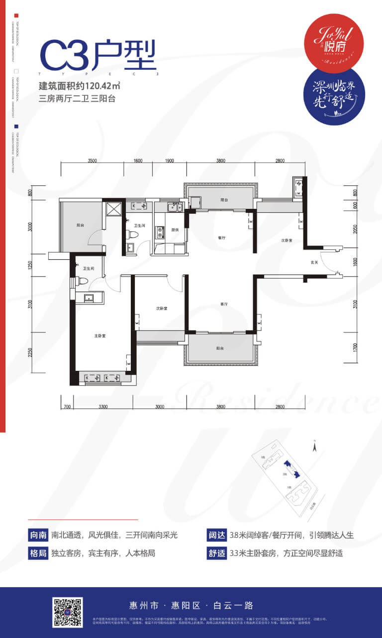 在售樓棟3棟,2棟;95-120㎡三至四房