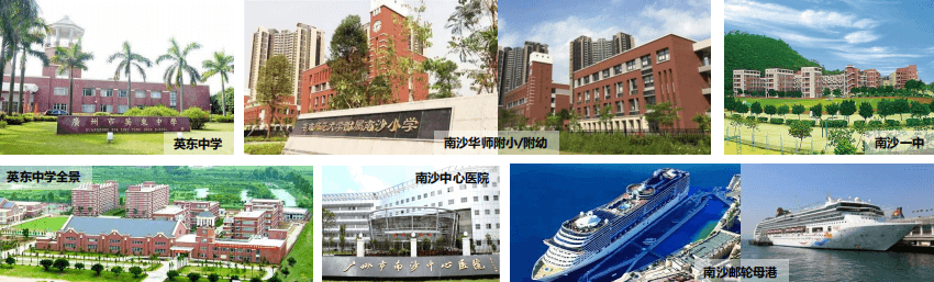 【教育配套】金洲小學、華師公立附幼/附小和附中(學校建設中,暫借華師附小場地)、南沙一中、中橋中學、廣東外國語學校、英東中學