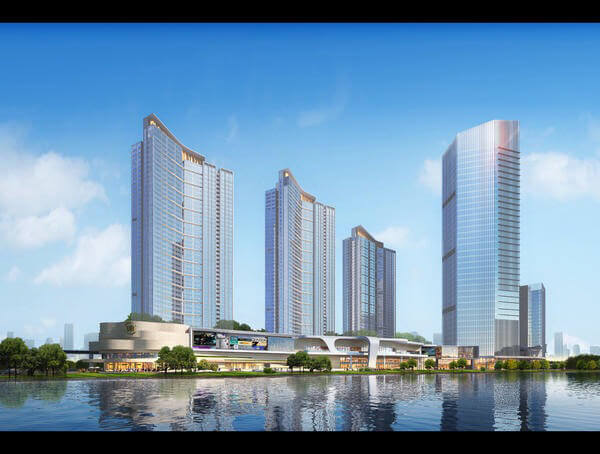 ①四大業態齊全。環宇城包含高端購物中心、國際超甲級寫字樓、萬豪集團萬麗酒店、奢裝闊景華宅四大業態,業態規劃齊全,可滿足業主一站式商務社交、休閒娛樂、居家生活需要。