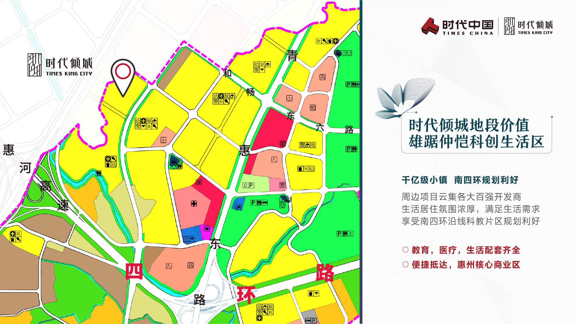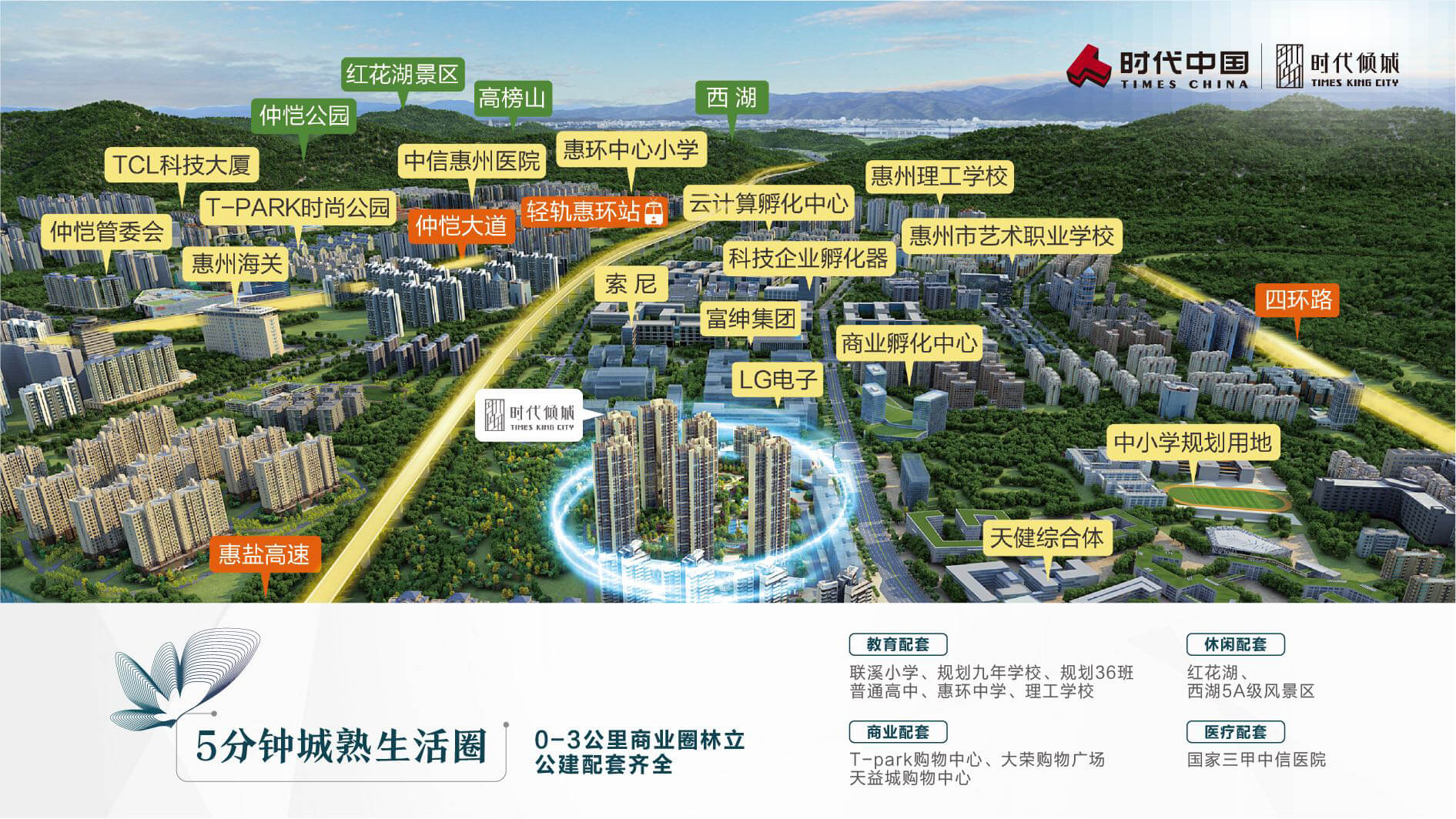【4幹道】緊靠仲愷大道、南四環路(建設中)、金愷大道、惠新大道4大城市主幹道,連通江北CBD、金山片區等繁華區域,時刻執掌惠州繁華。