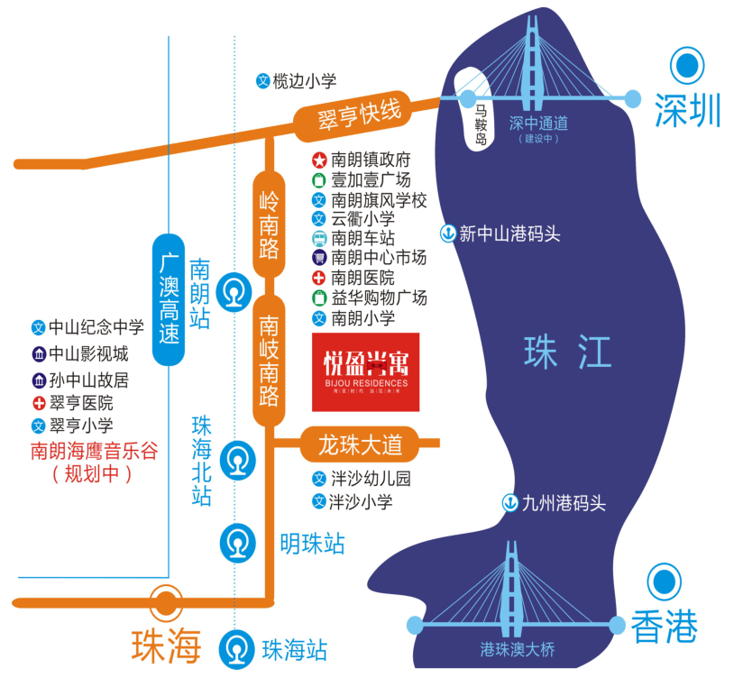 ●直線距離2公里到廣澳高速翠亨入口,連線廣州到澳門,1小時可