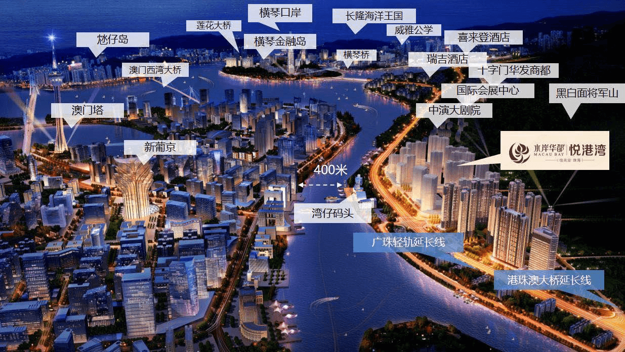 4、【多維交通樞紐 1 小時接駁世界繁華】:項目佔據港珠澳大橋第一落橋點,構建 1 小時大灣區融城生活圈;三橫五縱高速路網輕鬆對接金灣航空新城、橫琴自貿新區;輕軌上蓋,依託廣珠輕軌灣仔北站(在建中),接駁中國高鐵網及三大機場,暢行灣區迅達全國及世界;四大口岸環繞,無縫對接澳門繁華。
