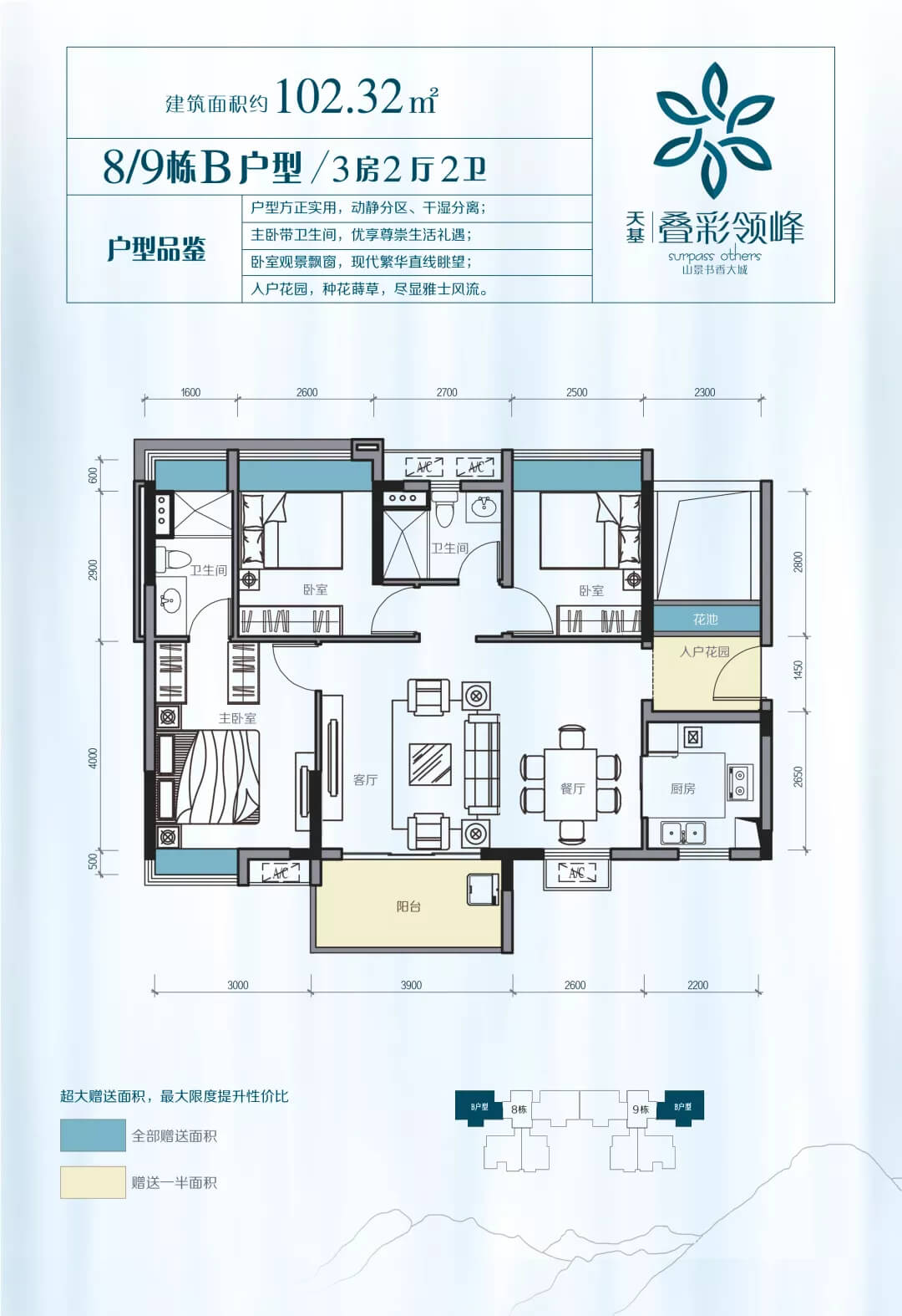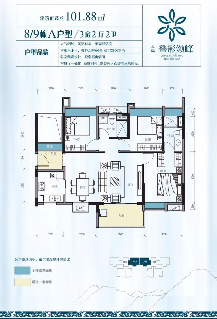 稀缺臻品戶型: 首推城區罕有72-102㎡三四房戶型,全南向望山景,原創優美戶型。稀缺小戶型,輕鬆上車