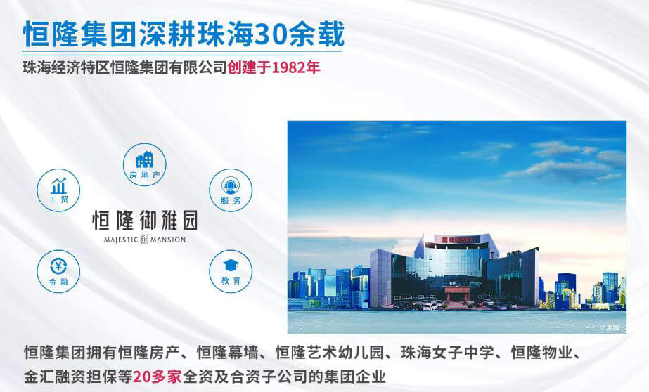 根植珠海,與珠海繁榮與共,珠海經濟特區恒隆集團有限公司,曆經三十多年奮進發展,房地產板塊業務遍及珠海各區及粵西區域城市,打造多個中高端精品物業、寫字樓及城市綜合體。2021年,恒隆榮譽钜獻灣芯水岸人居樣本——恒隆·禦景花園!
