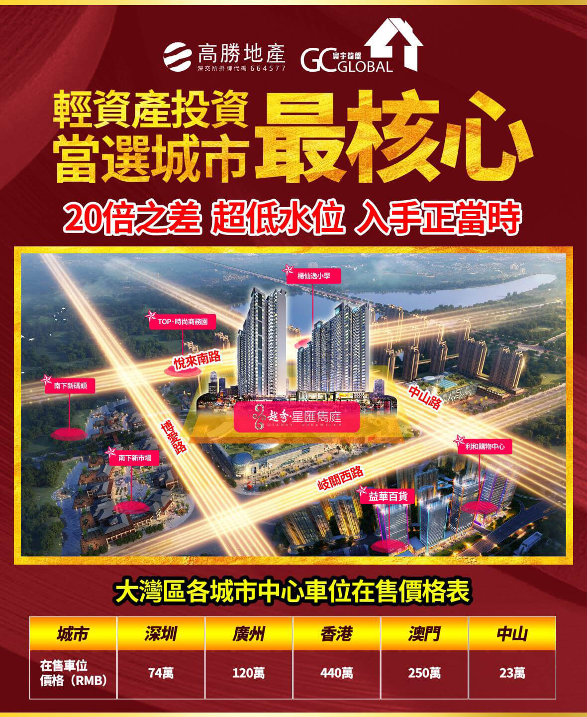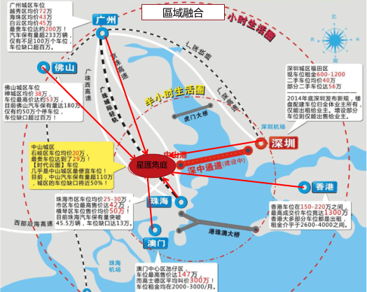 根據現時資料,中山市區車位元對比珠三角部分城市和港澳城市車位元資料有明顯的價格優勢,處於價格窪地。而上述的粵港澳三大規劃,將珠三角城市“區域融吅”,實現進一步“同城化”。